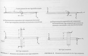 Los momentos concentrados también pueden ser el resultado de una fuerza que actua sobre una viga paralela a su eje con su línea de acción a una cierta distancia de éste. Esta situación se ilustra en la figura 6-8 la diferencia en este caso radica en que también hay una fuerza horizontal desbalance aplicada en la viga.